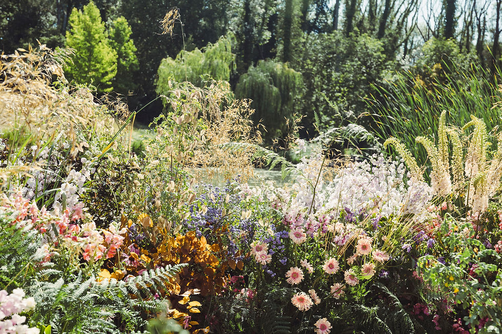 Our vision was to create a boutique festival world where luxury and laid-back collided beautifully. We took inspiration from open-air festivals and bohemian design – blending relaxed textures, vibrant colour, and elevated production. The estate became a playground of moments: from a lakeside ceremony framed in wildflowers to fairground rides spinning on the lawns.