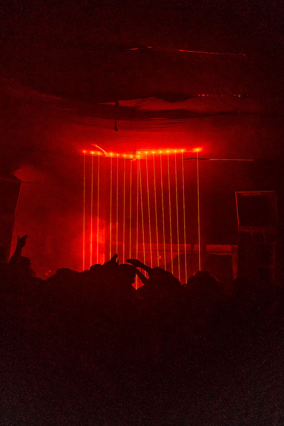 Inside, the stage featured laser bars, cages, and a fully immersive light show, creating a gritty underground club atmosphere.